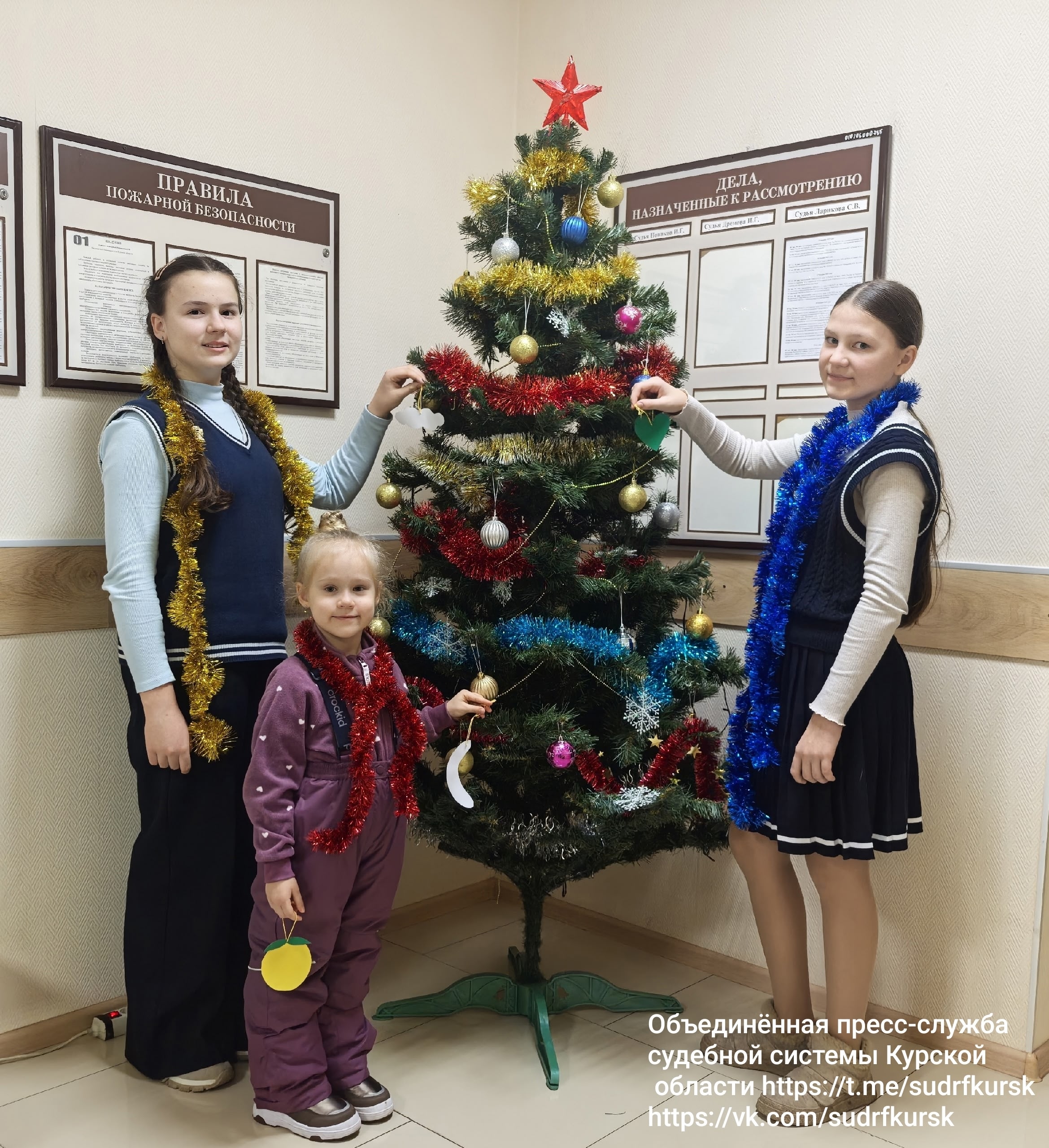 В Медвенском районном суде существует добрая традиция - наряжать ёлочку, главный символ Нового года. Служители Фемиды и их дети совместно украсили зеленую волшебницу. Подрастающее поколение заранее подготовилось и пришло на работу к мамам и папам с игрушками и поделками, которые ребята смастерили своими руками. Украшение помещений здания суда, новогодняя ёлочка, сверкающая мишура - всё это помогает создать хорошее настроение в преддверии самого удивительного праздника . ![]() При полном или частичном использовании материала ссылка обязательна. Для СМИ: дополнительную информацию можно получить по телефону (47146) 4-21-67, сотрудник Объединенной пресс-службы судебной системы Курской области Алтухова Елена Геннадиевна.
